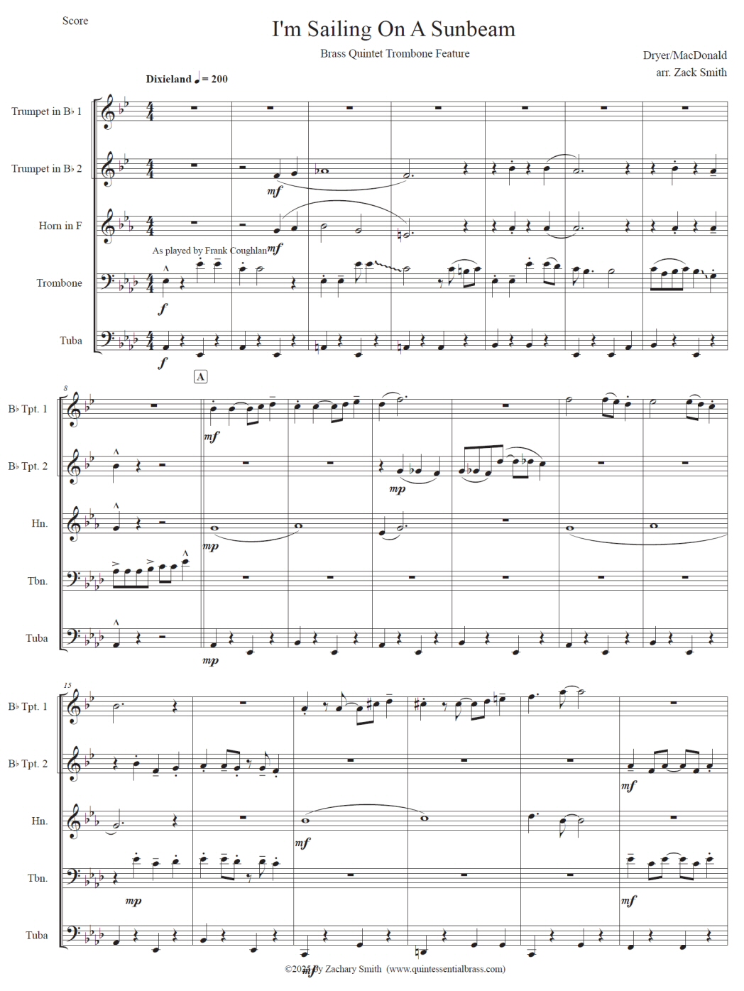 tuba also get a piece of the melody. A fun addition to your "early jazz" concert program.