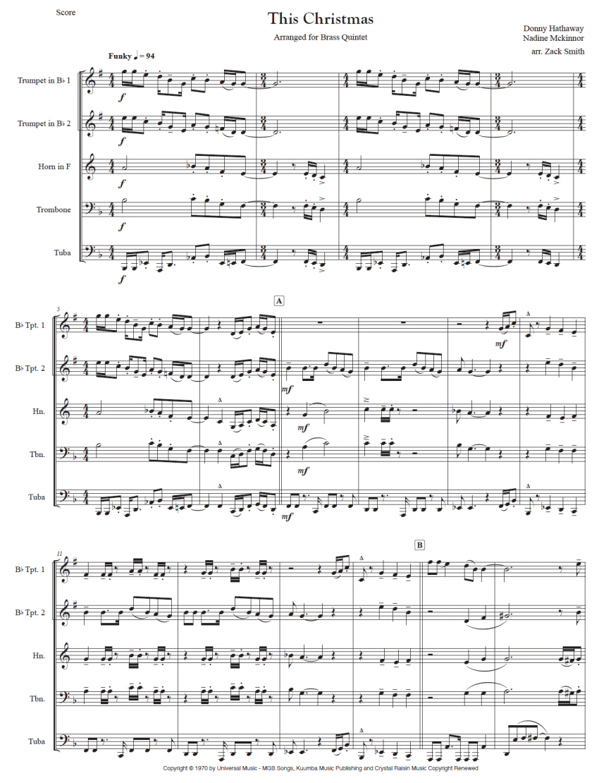 This is a faithful rendition of the Donny Hathaway Christmas standard arranged for brass quintet. Perfect